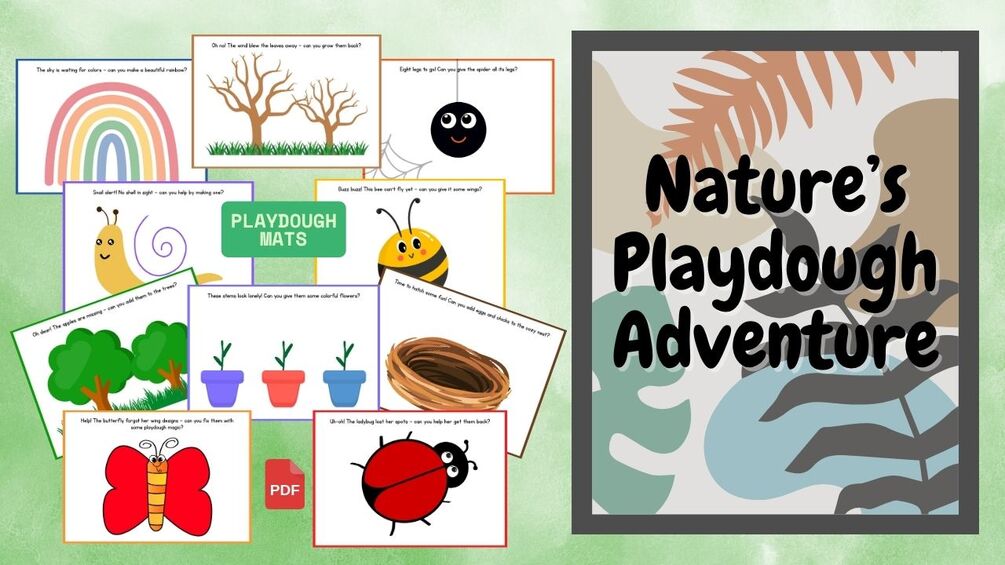 Let your little ones explore nature with their hands! This set of 10 beautifully designed nature-themed playdough mats is perfect for fun, hands-on learning. From helping a ladybug get her spots to building rainbows and filling nests, each mat invites kids to imagine, create, and learn through play.